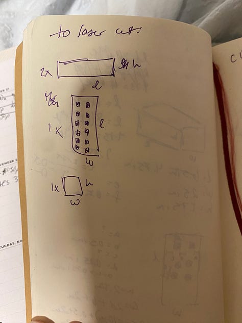 In the next couple of weeks, I will work on coding, sewing in the neopixels, and then drafting up my laser cut box!